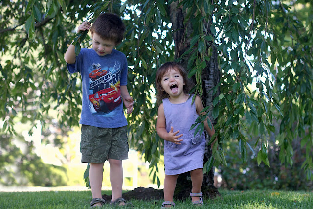 Spongebob is serious business. Really... it is. When it comes on they both stop playing and go sit to watch... or in Cora's case today, stand there. I love the picture I got... even if it was while she was watching the tube. Oh and yes, those are Shane's undies she has on over her diaper. haha. When it's hot I like to let her run around in just a diaper but if there are no clothes covering that diaper... you guessed it, it comes off.